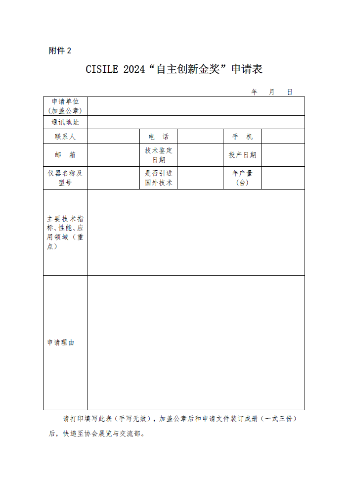 2.CISILE 2024“自主創新金獎”申請表