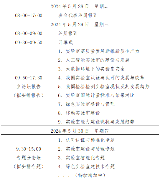 (一)主題報告:擬邀請國家市場監督管理總局、海關總署、國家認證認可監督管理委員會、中國合格評定國家認可委員會等政府主管部門負責人,兩院院士,行業知名專家,企業家就我國實驗室管理及檢測技術宏觀市場環境、發展趨勢、政策解讀等內容作特約報告。