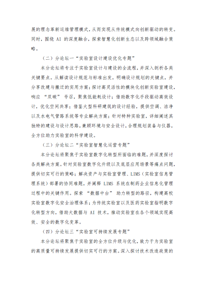 在當今科技日新月異的時代背景下,實驗室作為科技創新的重要陣地,承載著推動知識進步、技術突破的關鍵使命。從實驗室的規劃與建設,到日常的運維管理,再到科研成果的產出與轉化,每一個環節都關乎著實驗室的潛力能否充分發揮。中國儀器儀表行業協會和世信國際會展集團股份有限公司充分利用北京機工弗戈傳媒廣告有限公司舉辦過多屆實驗室設計建設與安全管理會議及培訓的經驗,共同舉辦第六屆中國實驗室發展大會。CLC2025第六屆中國實驗室發展大會設置一個主論壇和六個分論壇。主論壇以前瞻・融合:實驗室生態高質量發展為主題,六個分論壇分別在實驗室設計建設優化、實驗室智慧化運營、實驗室可持續發展、實驗室質量管理、高校實驗室多元發展與創新實踐、實驗室安全管理等六個專題方面,全面深入地探討從實驗室設計規劃、建設、儀器設備采購、運維等整個生態系統的寶貴經驗、見解和前沿解決方案,審視實驗室在全生命周期中面臨的挑戰與機遇,共同探索創新的理念和方案,推動實驗室的高效卓越發展。一、