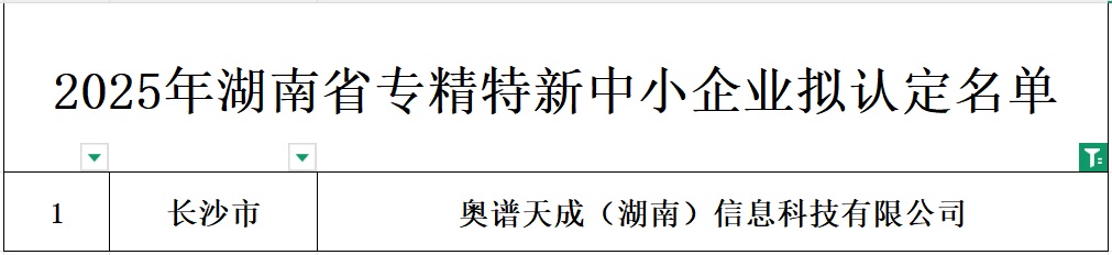 奧譜天成·集團湖南子公司榮獲湖南省“專精特新”中小