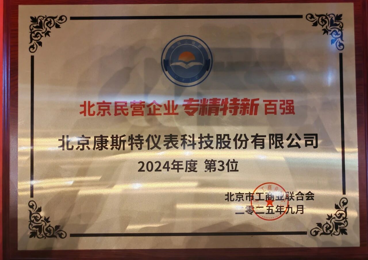 近日,“2025 北京民營企業專精特新 100 強” 榜單正式發布,北京康斯特儀表科技股份有限公司憑借出色表現榮獲第三名,展現了其在民營經濟領域的強勁實力。