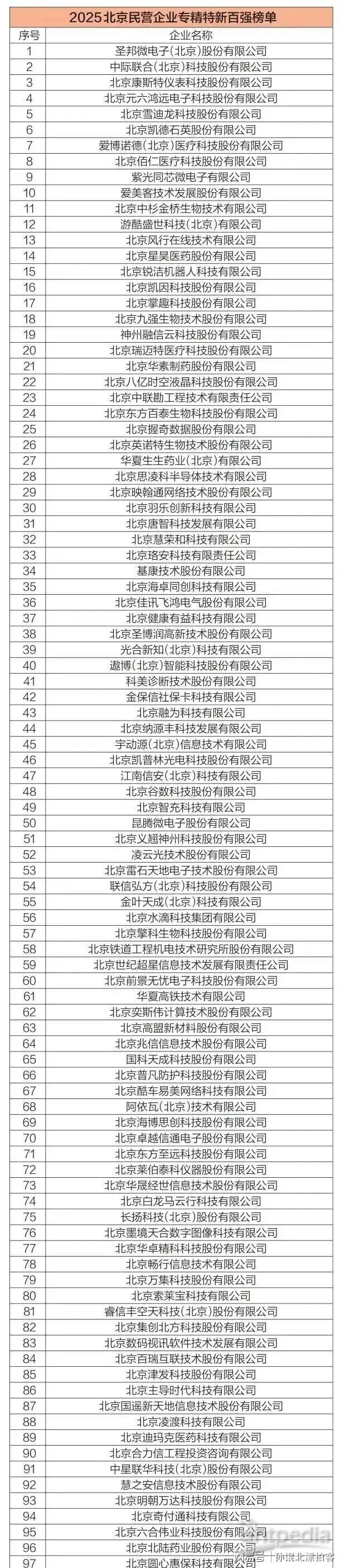 萊伯泰科、雪迪龍上榜!北京專精特新民企百強出爐,總