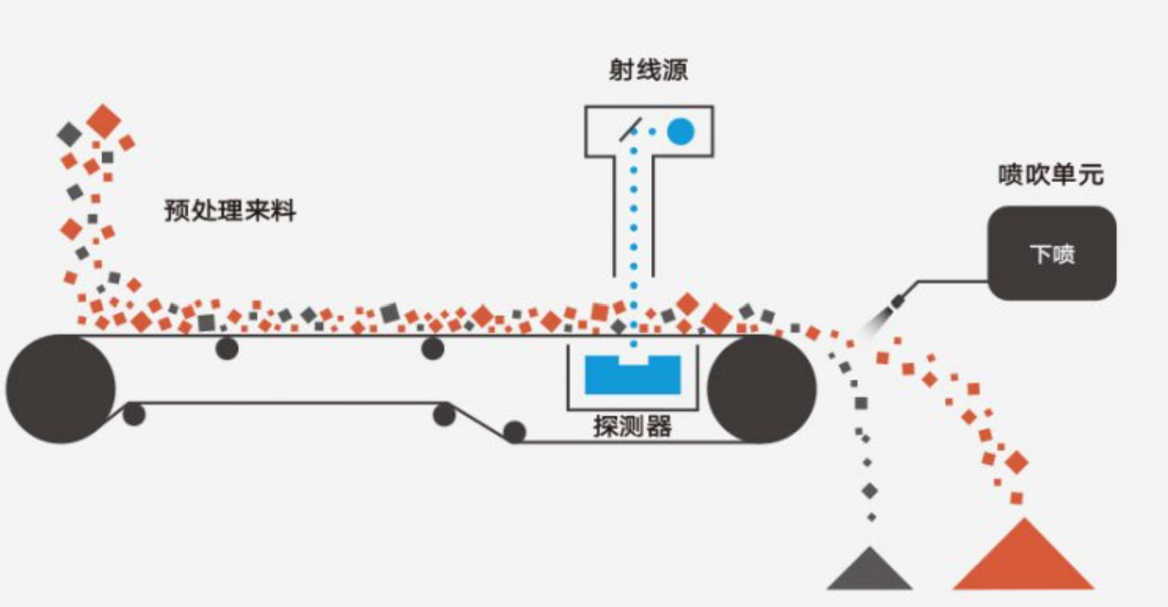霍里思特的核心產(chǎn)品是基于X射線透視成像和AI識別算法的智能分選機(jī)。設(shè)備通過X射線探測器獲取礦石內(nèi)部結(jié)構(gòu)特征,結(jié)合AI算法識別廢石與有用礦石,最后用氣排槍實(shí)現(xiàn)精準(zhǔn)分離。整個過程無需用水,可大幅減少后續(xù)磨礦、浮選環(huán)節(jié)的無用功和藥劑消耗。